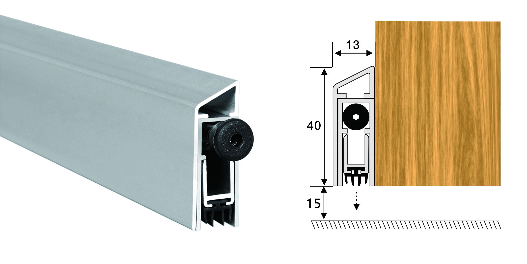 外裝式門底自動升降式密封器,適用于后補工程,如已安裝到位的門需要增加隔音,隔溫,防塵等功能。安裝于門底的表面,簡單方便;外表美觀。